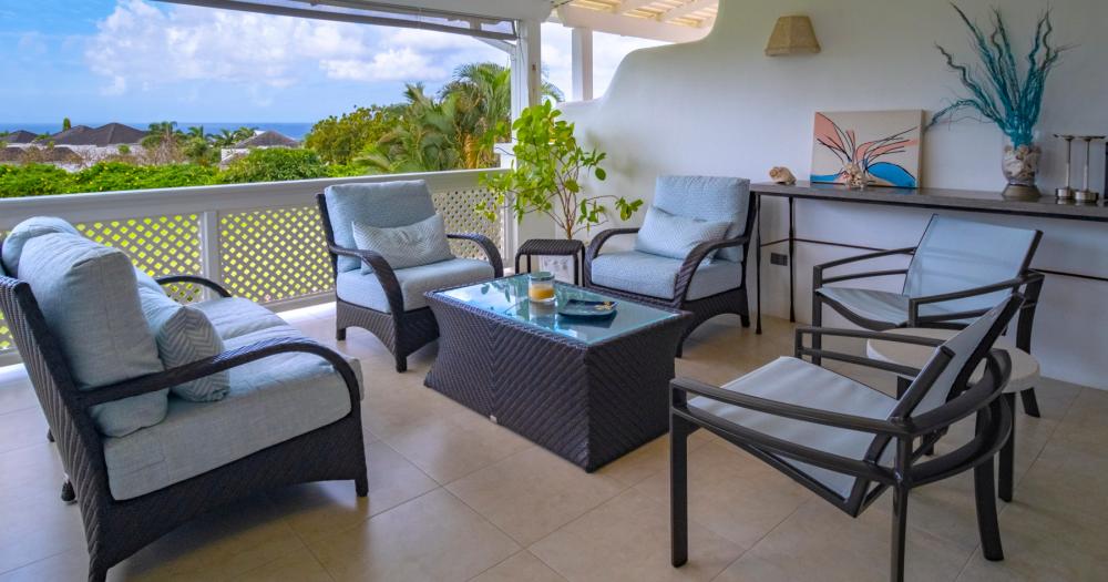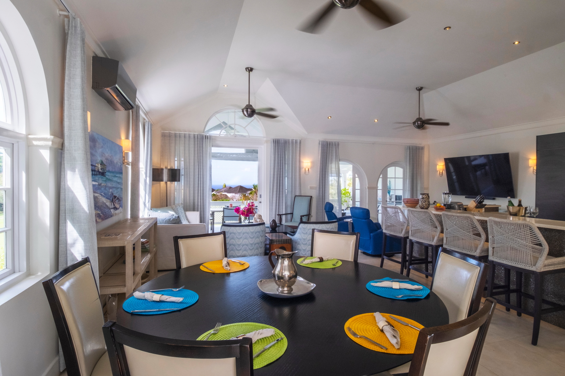 The villa’s open-plan layout and high tray ceilings create a light and breezy atmosphere, blending space, character, and style seamlessly. The upper-level living area, now fully air-conditioned and featuring new modern appliances, flows effortlessly onto the covered patio—where breathtaking sea views perfectly complement the indoor-outdoor living experience.