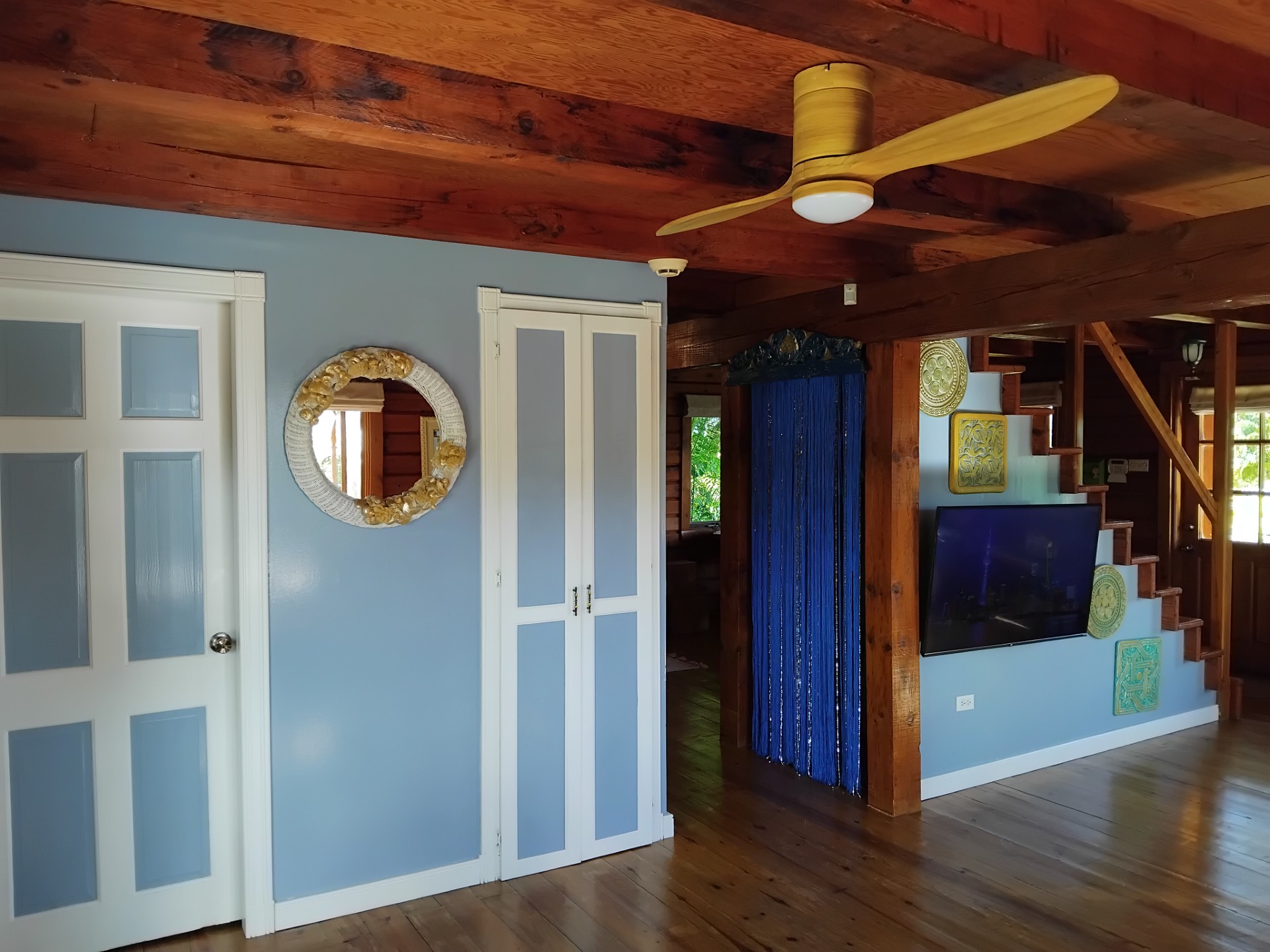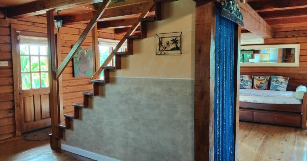 - The staircase is solid wood, and its walls are hand-painted local artwork - that never fails to bring a smile.
